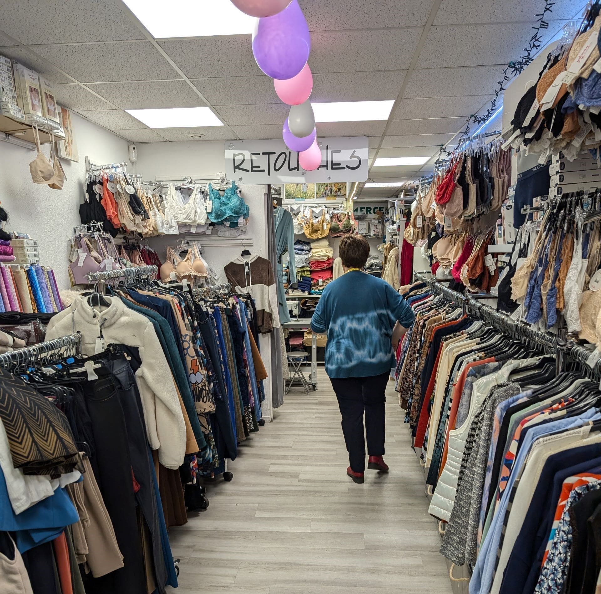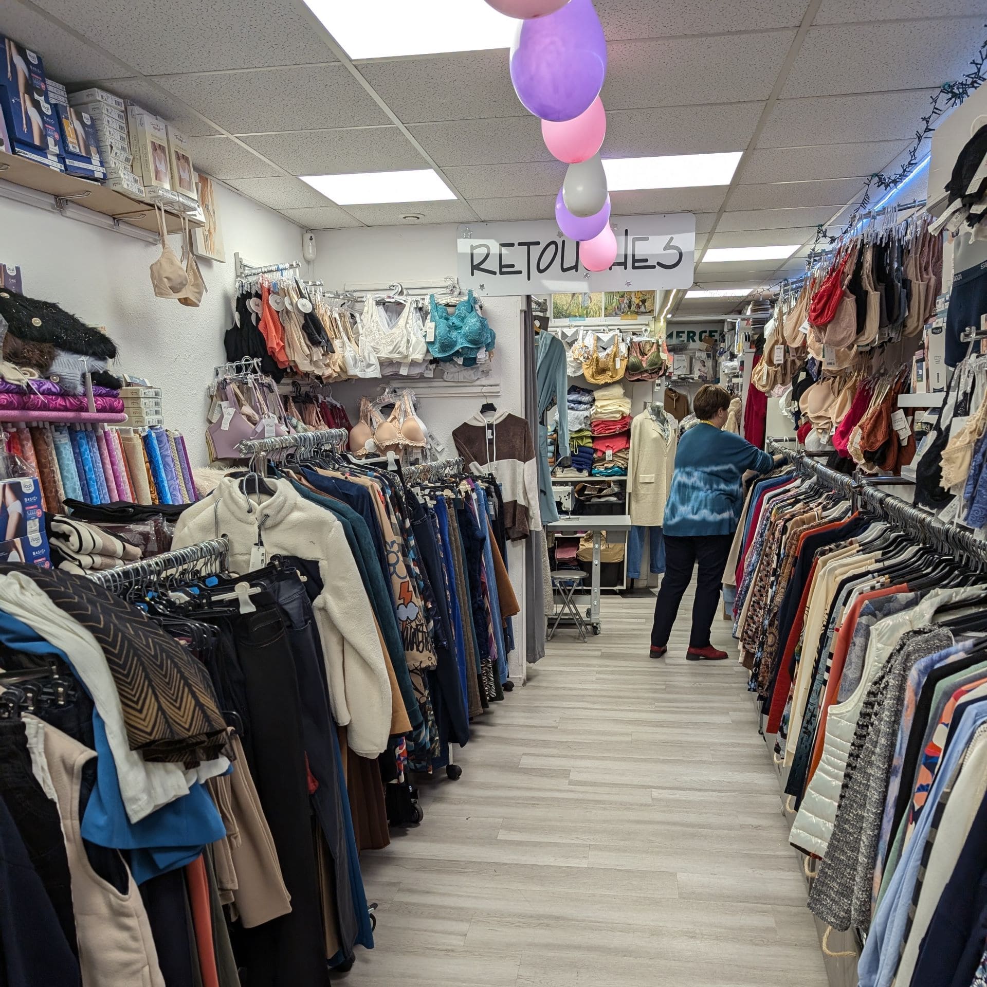 Vêtements femmes, lingerie, mercerie, laine Phildar, retouches.